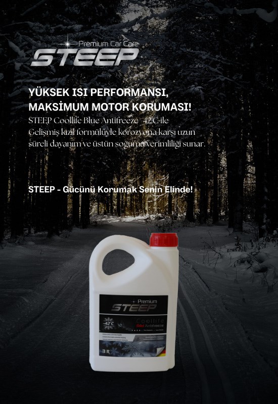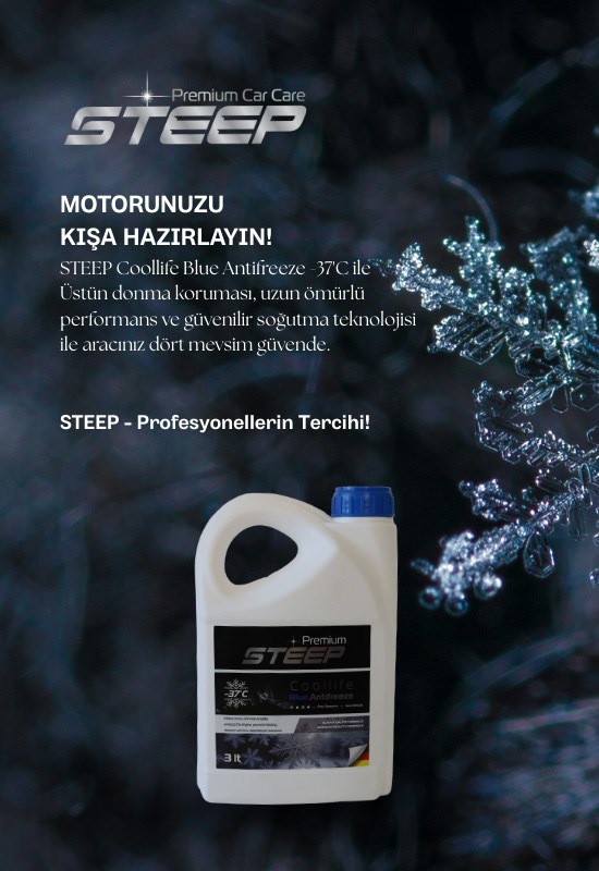 STEEP Coollife Blue Antifreeze -37'C ile Üstün donma koruması, uzun ömürlü performans ve güvenilir soğutma teknolojisi ile aracınız dört mevsim güvende.