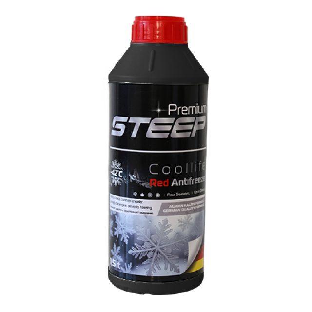 Steep Coollife Red Antifriz -42°C 1,5L, aracınızın motorunu soğuk hava koşullarında donmaya karşı etkili bir şekilde korur ve motorun sıcaklık dengesini sağlar. -42°C'ye kadar dayanıklı formülüyle, kışın zorlu şartlarında motorun sorunsuz çalışmasını sağlar. Bu antifriz, soğutma sistemini hem korur hem de aşırı ısınmayı engeller, aracınızın daha uzun ömürlü olmasına katkı sağlar.
